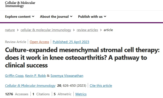 加拿大多伦多大学的研究团队发表了一篇题为《Culture-expanded mesenchymal stromal cell therapy: does it work in knee osteoarthritis? A pathway to clinical success》的综述文章。