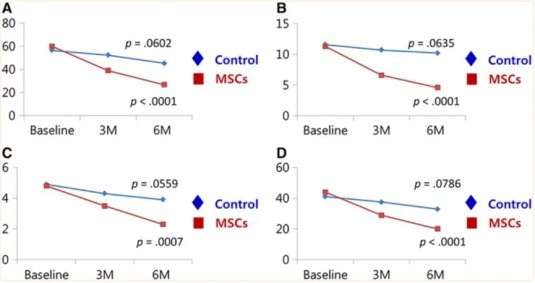 研究团队指出,尽管涉及的610名患者样本相对较小,无法得出关于最佳剂量、给药策略、MSC来源和制造方法以及整体治疗效果等方面的明确结论,但荟萃分析结果显示,相对于基线,接受MSC治疗的患者在疼痛、功能和症状方面均表现出积极的改善。