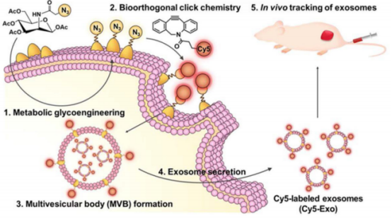 此外,点击化学与外泌体的结合还为疾病的诊断和监测提供了创新的手段。通过将荧光标记物与外泌体进行点击化学连接,可以实现对疾病的实时成像和追踪,为临床医生提供更准确、更及时的诊断信息[4]。