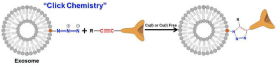 随着研究的深入, 其在作为治疗药物或载体的优势逐渐成为研究人员关注的热点。现阶段多种靶向修饰策略正在开发,以期提高外泌体对特定组织或器官的靶向特异性,拓展外泌体在精准医疗领域的应用前景,这就不得不提到一个关键的技术——点击化学。