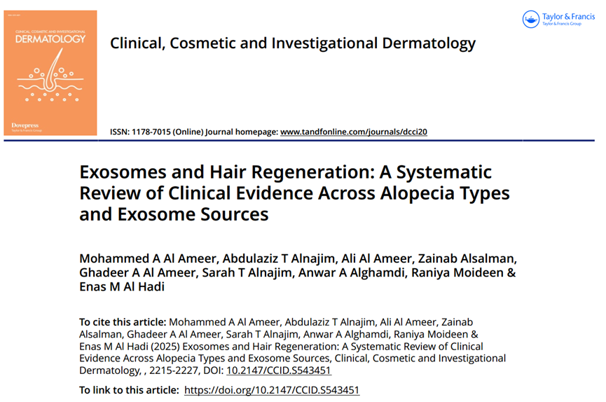 一项今年9月发表在《Clinical, Cosmetic and Investigational Dermatology》期刊上的系统评价,深入分析了外泌体在应对不同类型脱发过程中的临床证据。