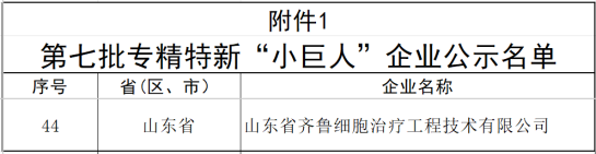 根据山东省工业和信息化厅10月20日发布的《关于山东省第七批专精特新“小巨人”企业和2025年专精特新“小巨人”复核通过企业名单的公示》,山东省齐鲁细胞治疗工程技术有限公司(简称“齐鲁细胞”)荣耀上榜,被认定为国家级专精特新“小巨人”企业。这一殊荣的获得,是对齐鲁细胞多年来坚持科技创新提升综合实力的认可。