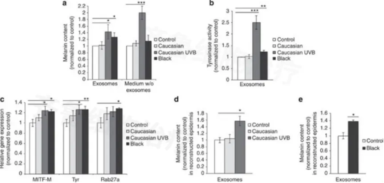 外泌体参与黑色素合成中的多种基因表达和酶活性调节