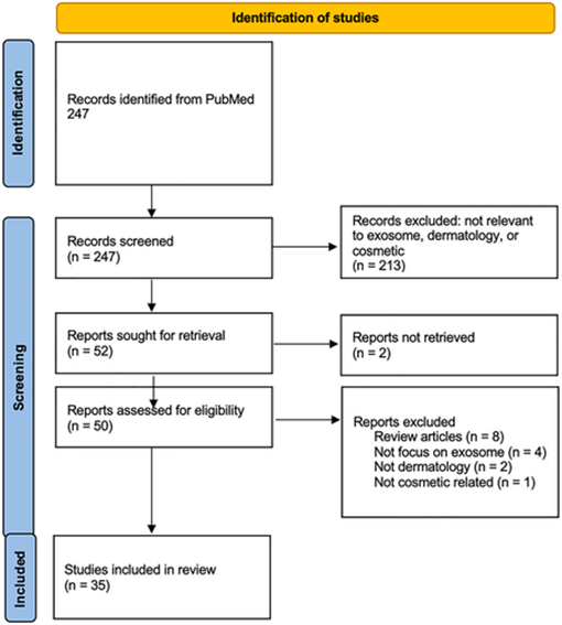 除了黄褐斑,在探索外泌体护肤的潜力时,最新的研究为我们提供了一些令人兴奋的方向。例如,利用外泌体的独特性质,科学家们正在开发新的护肤策略,这些策略不仅能够改善皮肤的外观,还能够深入到细胞层面,促进皮肤的健康和再生。根据文献显示,研究人员以“外泌体”及皮肤“为关键词”对2010-2023年期间的PubMed文献进行了全面搜索,对符合条件的178项研究进行了汇总分析。