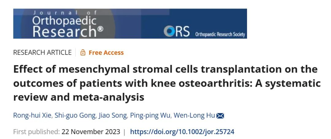 一项最新发表在Orthopaedic Research上关于膝骨关节炎干细胞注射临床试验的荟萃分析,也得出了干细胞在针对膝骨关节方向具有潜力的结论。