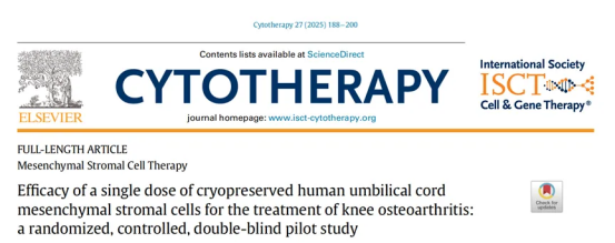 2025年发表于《Cytotherapy》的最新随机对照试验,首次探讨了脐带间充质干细胞(UC-MSCs)对膝骨关节炎的长期疗效。其中脐带间充质干细胞的制备和保存均在GMP环境下进行,以保障质量和安全性。