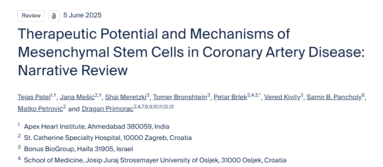该研究由来多个国家科研机构的团队联合完成,系统梳理了间充质干细胞(MSC)在冠心病治疗中的治疗潜力、作用机制、临床应用及未来方向,为再生医学在心血管领域的应用提供了全面参考。