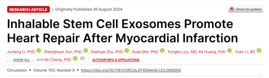 根据心血管领域Top期刊《Circulation》刊文,雾化吸入外泌体可有效改善心肌梗死后心肌重塑。