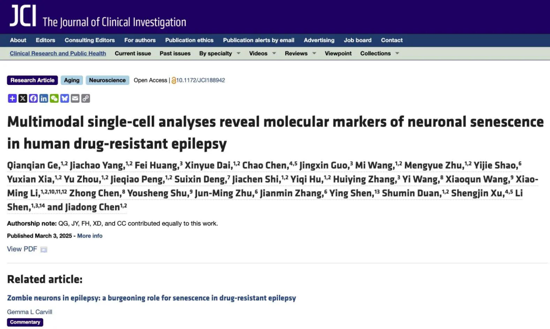 更关键的是,浙江大学陈家东团队在《Journal of Clinical Investigation》的研究证实,难治性癫痫患者的皮层锥体神经元会高表达衰老标志物(如P21、P53),这些衰老神经元通过释放炎症因子破坏神经平衡,直接降低癫痫发作阈值,形成“发作诱导衰老、衰老加重发作”的恶性循环。