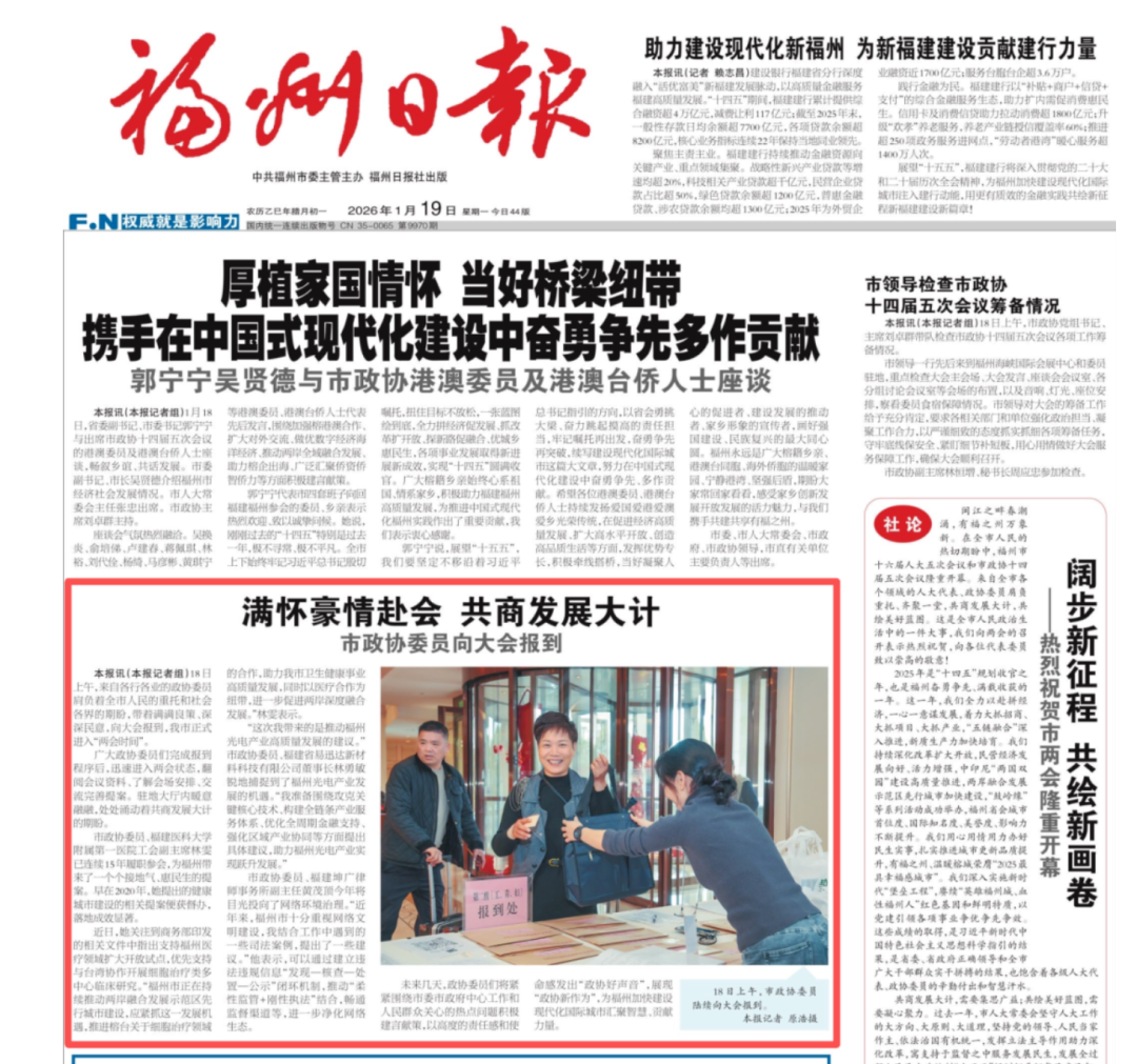 连续履职15年的市政协委员、福建医科大学附属第一医院工会副主席林雯,提交了关于推进榕台细胞治疗领域合作的提案。