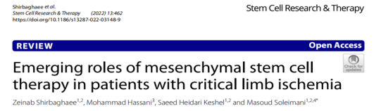 早前,发表于《Stem Cell Research & Therapy》上的文章,针对于间充质干细胞在危重症肢体缺血方向的多项临床研究进行综述,详细介绍了多种来源的间充质干细胞均能有效且安全的改善患肢临床症状,减轻患者痛苦,降低截肢率,提高患者生存质量。